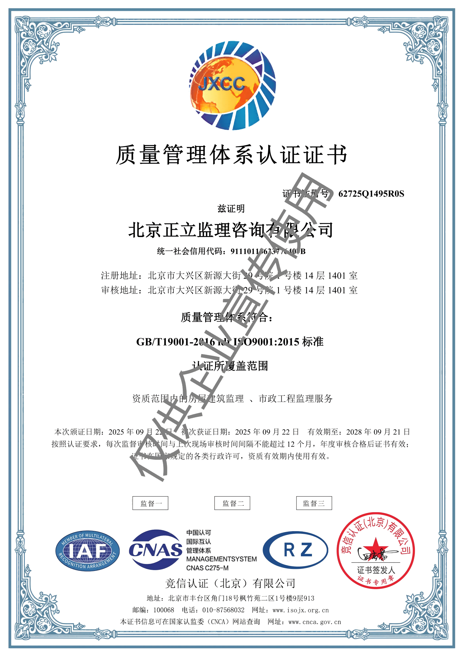 北京正立監(jiān)理咨詢有限公司成立于1998年7月1日,其前身隸屬于北京市公路質(zhì)量監(jiān)理站。具有獨立法人資格,是獨立核算、自負盈虧的經(jīng)濟實體。企業(yè)經(jīng)營范圍:公路工程監(jiān)理、交通工程監(jiān)理、市政公用工程建設監(jiān)理、工業(yè)與民用建筑工程監(jiān)理、工程監(jiān)理咨詢、技術(shù)咨詢、技術(shù)培訓等。